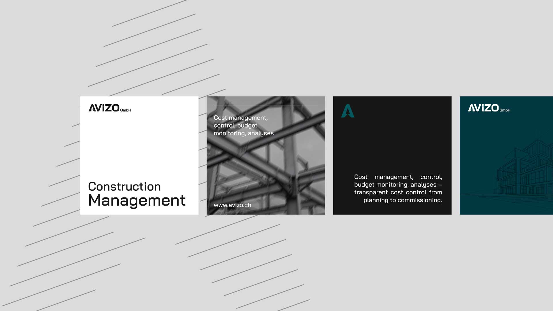 The result is a distinctive and scalable brand that positions AVIZO as a precise, dependable, and forward-thinking partner in construction management.