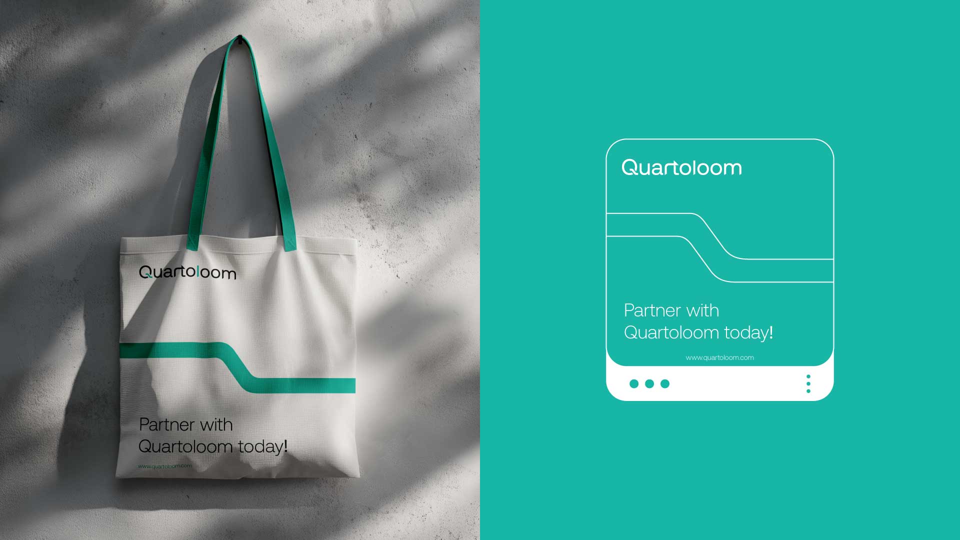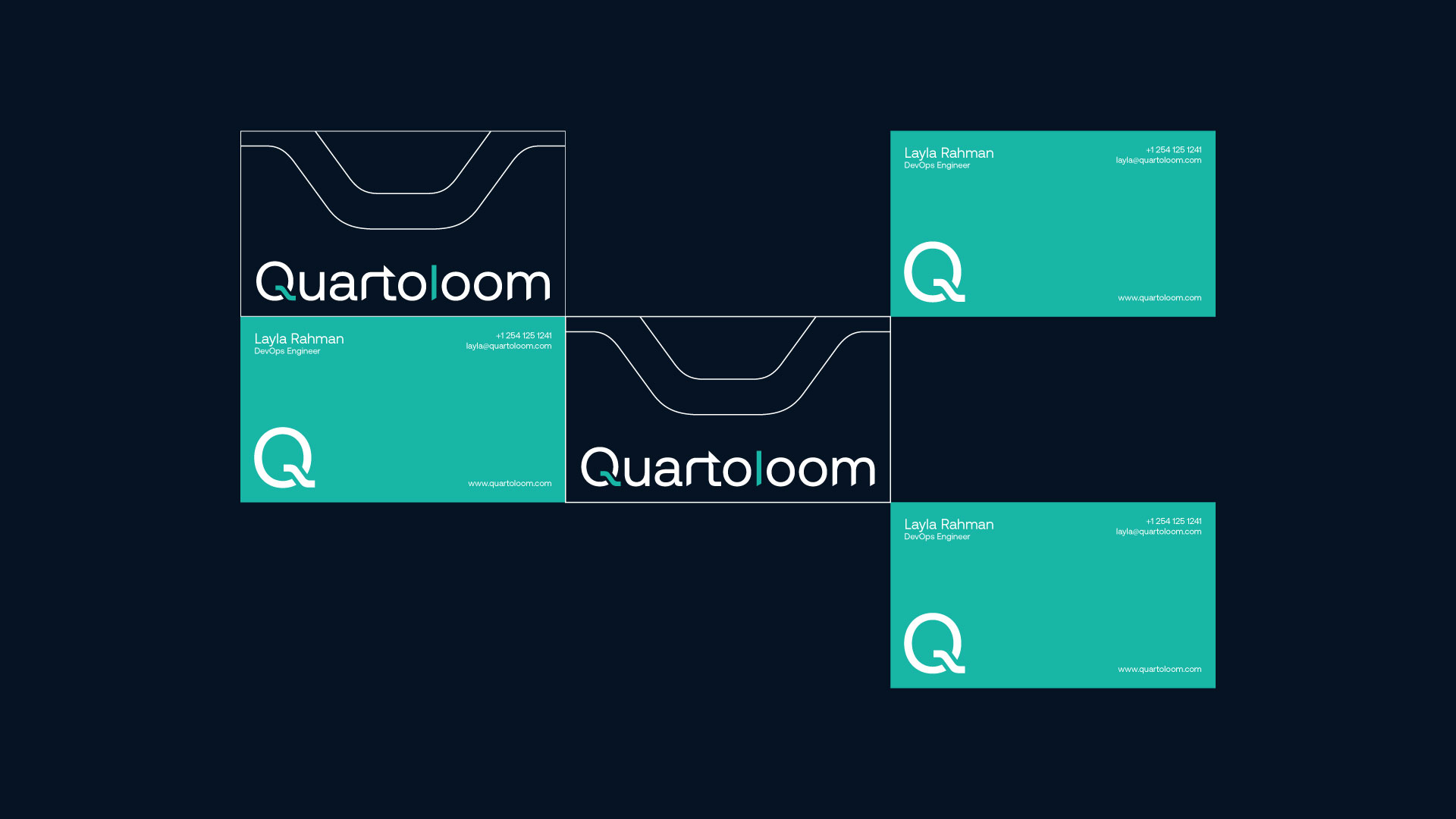 The Quartoloom logo and brand identity are designed to reflect clarity, innovation, and efficiency within the logistics and supply chain space. The logo introduces a sense of movement and connection, symbolizing the seamless flow of data, goods, and systems across global networks. Its clean and modern form positions the brand as forward-thinking and technology-driven.