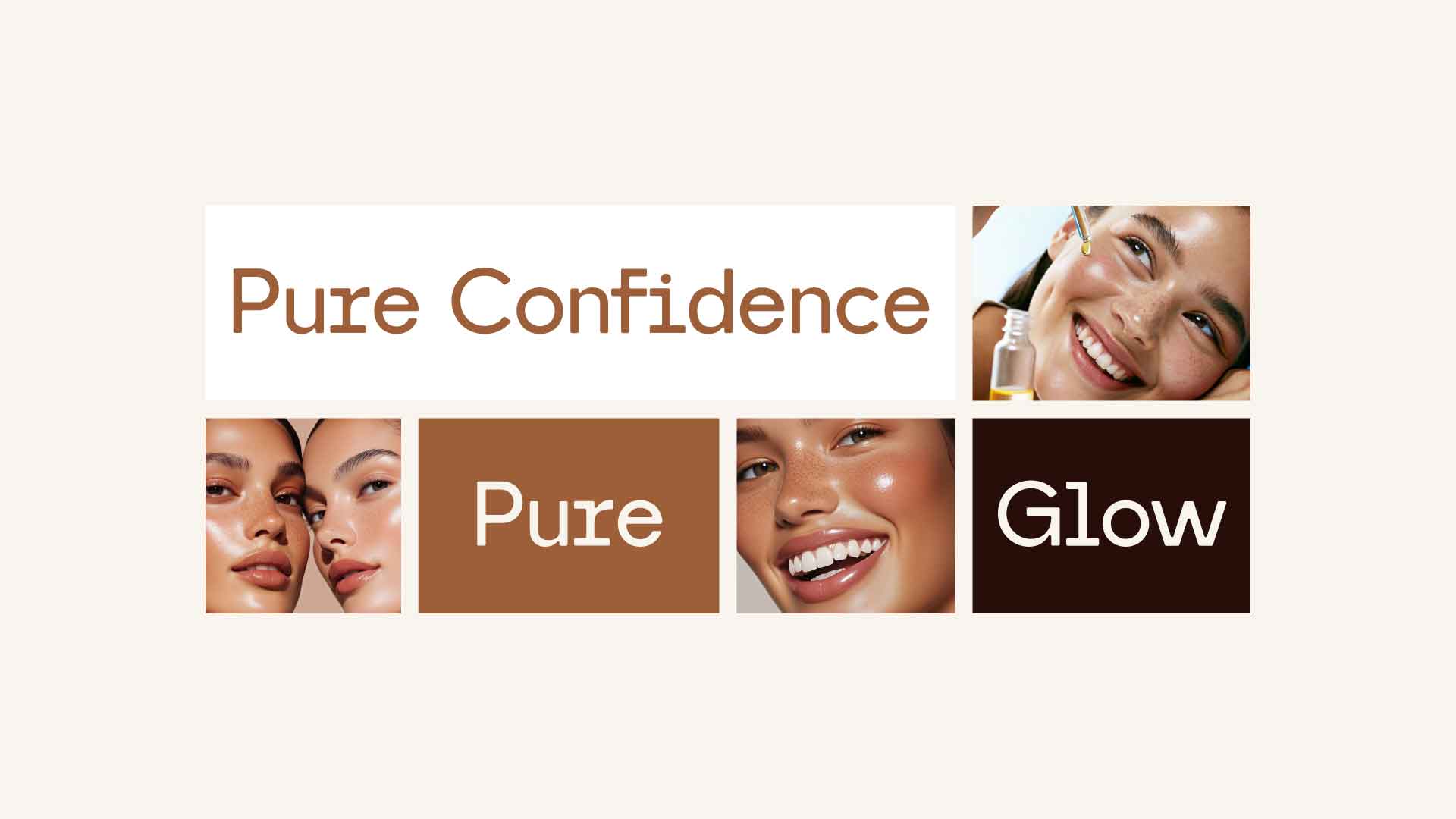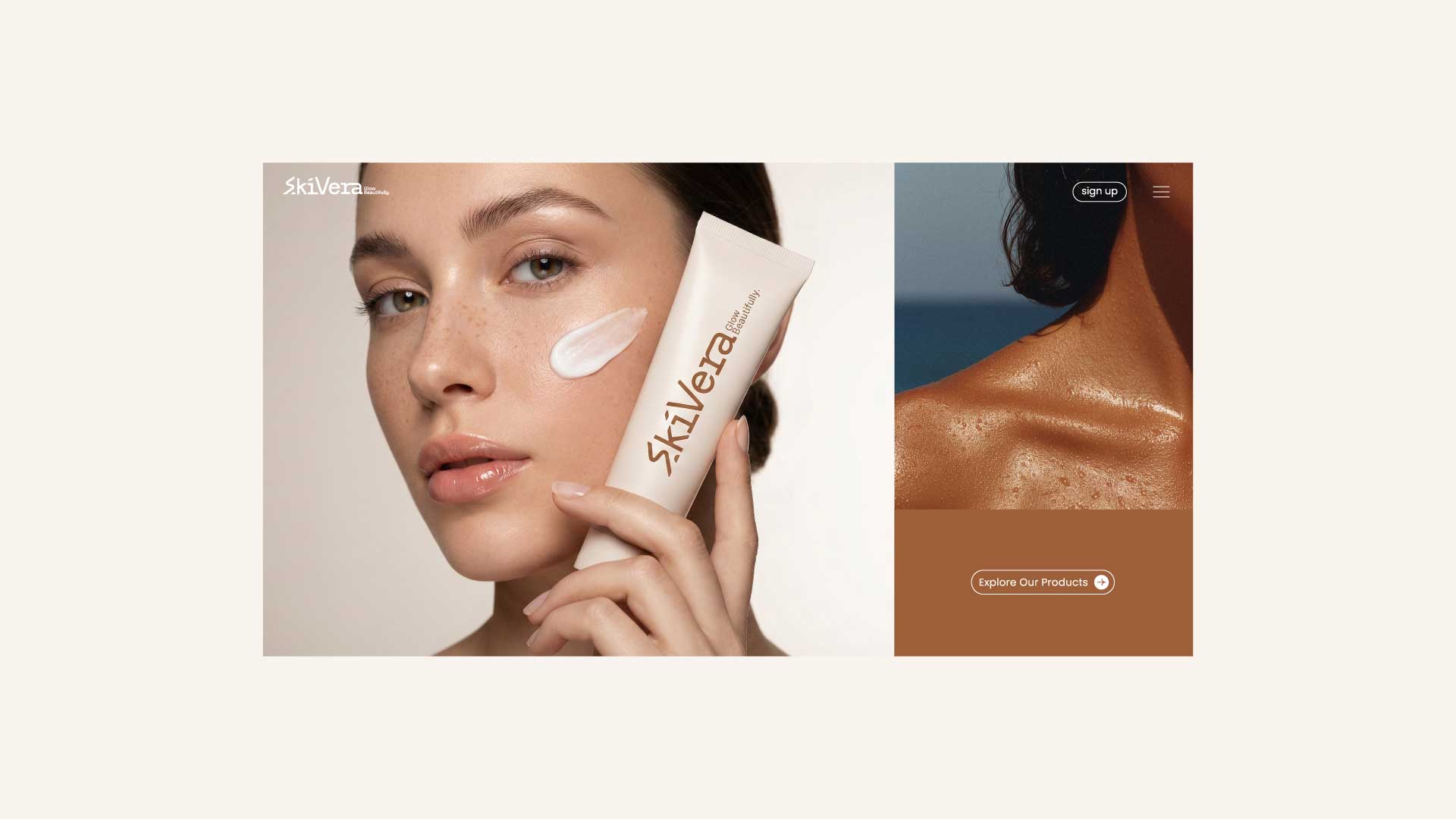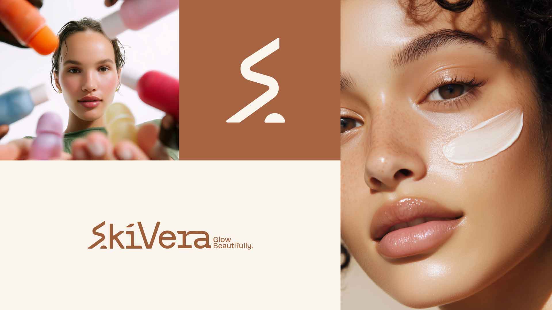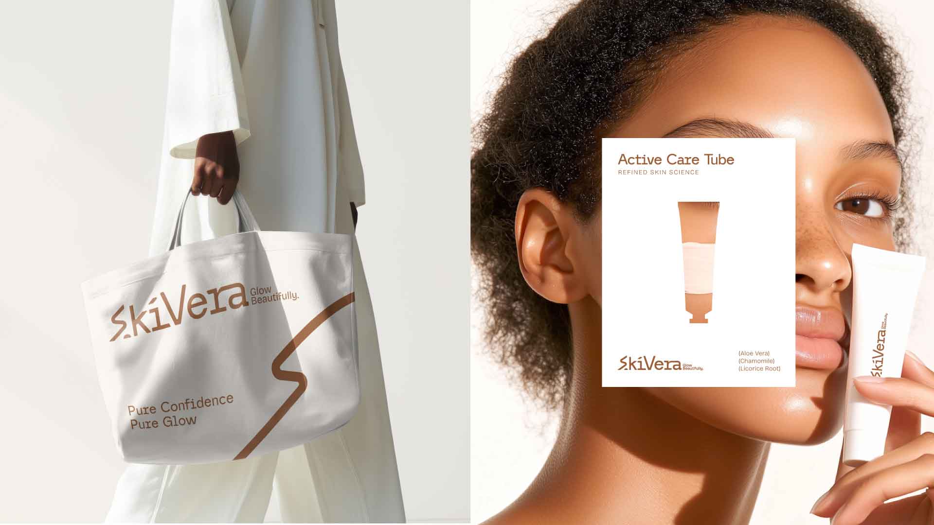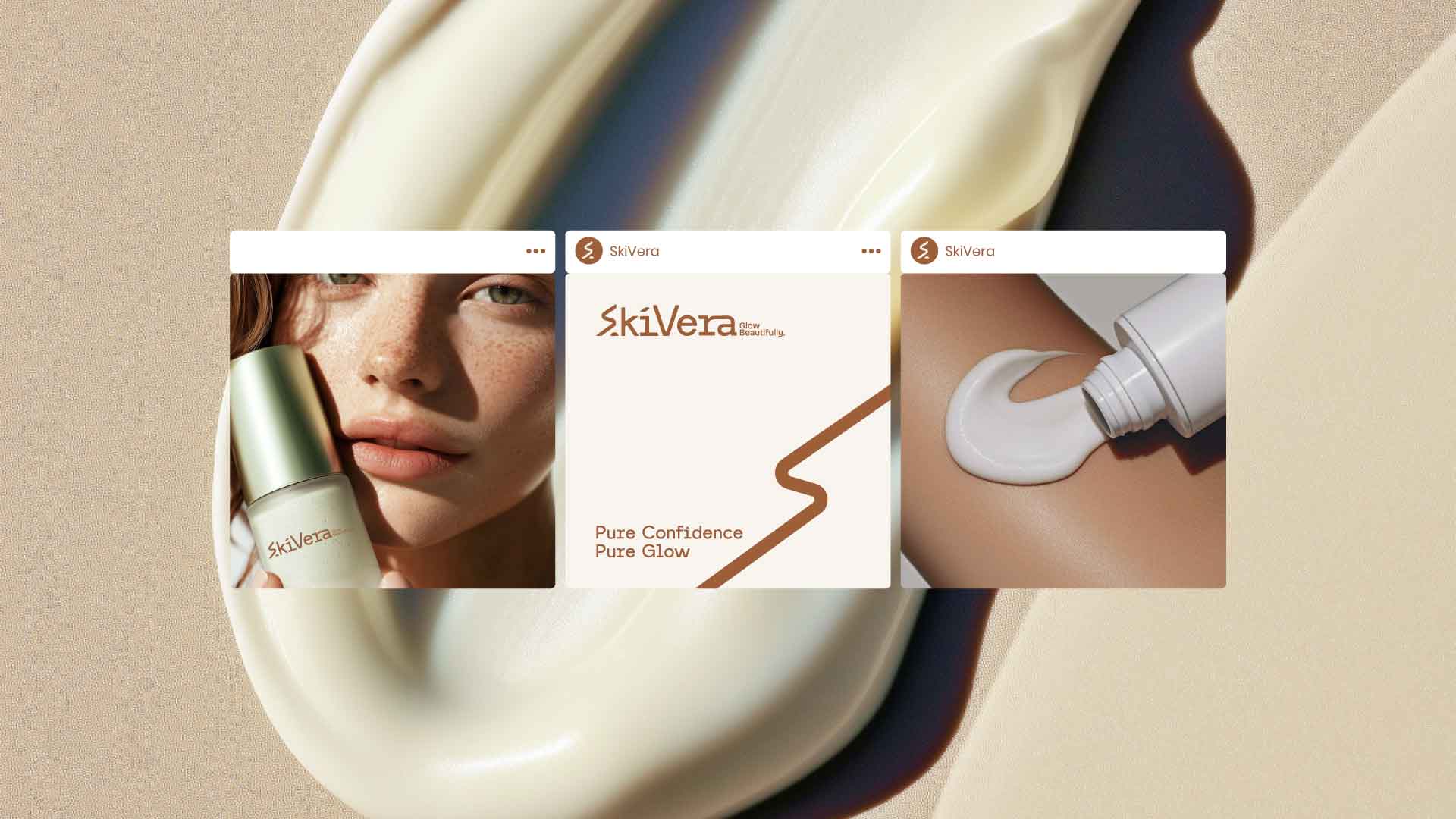 The SkiVera brand identity is designed to embody purity, performance, and radiant skin. Rooted in a minimal and refined aesthetic, the visual system combines warm, earthy tones with clean, modern typography to create a sense of trust, softness, and everyday luxury.