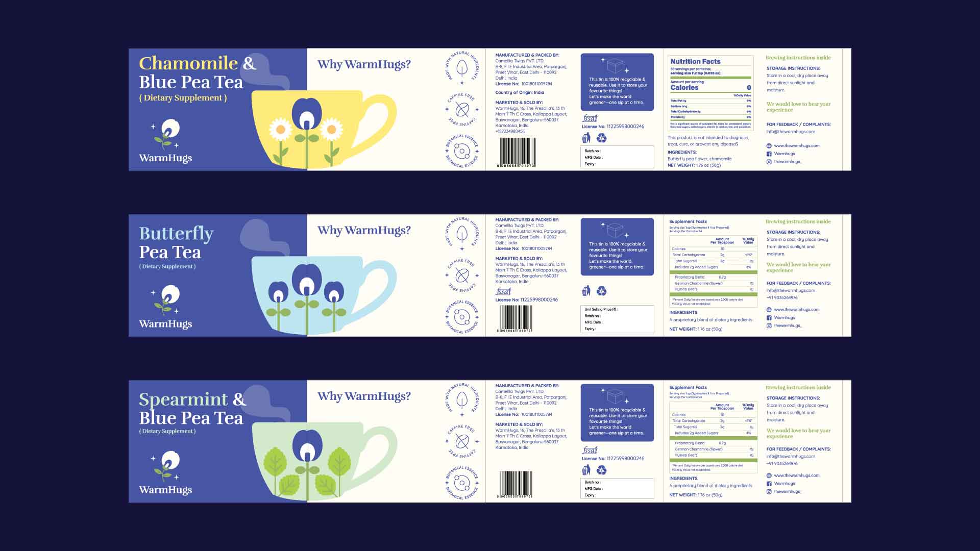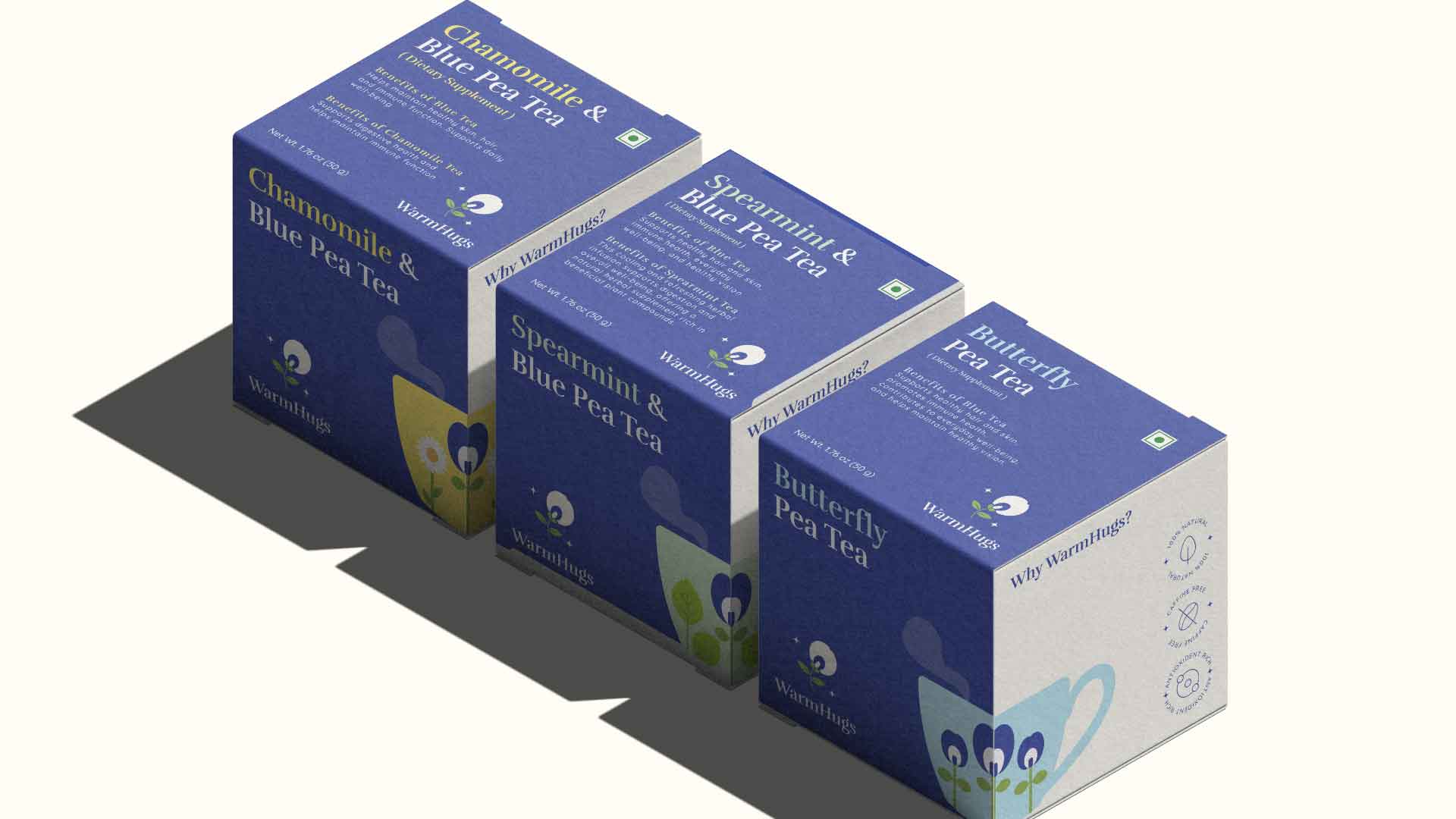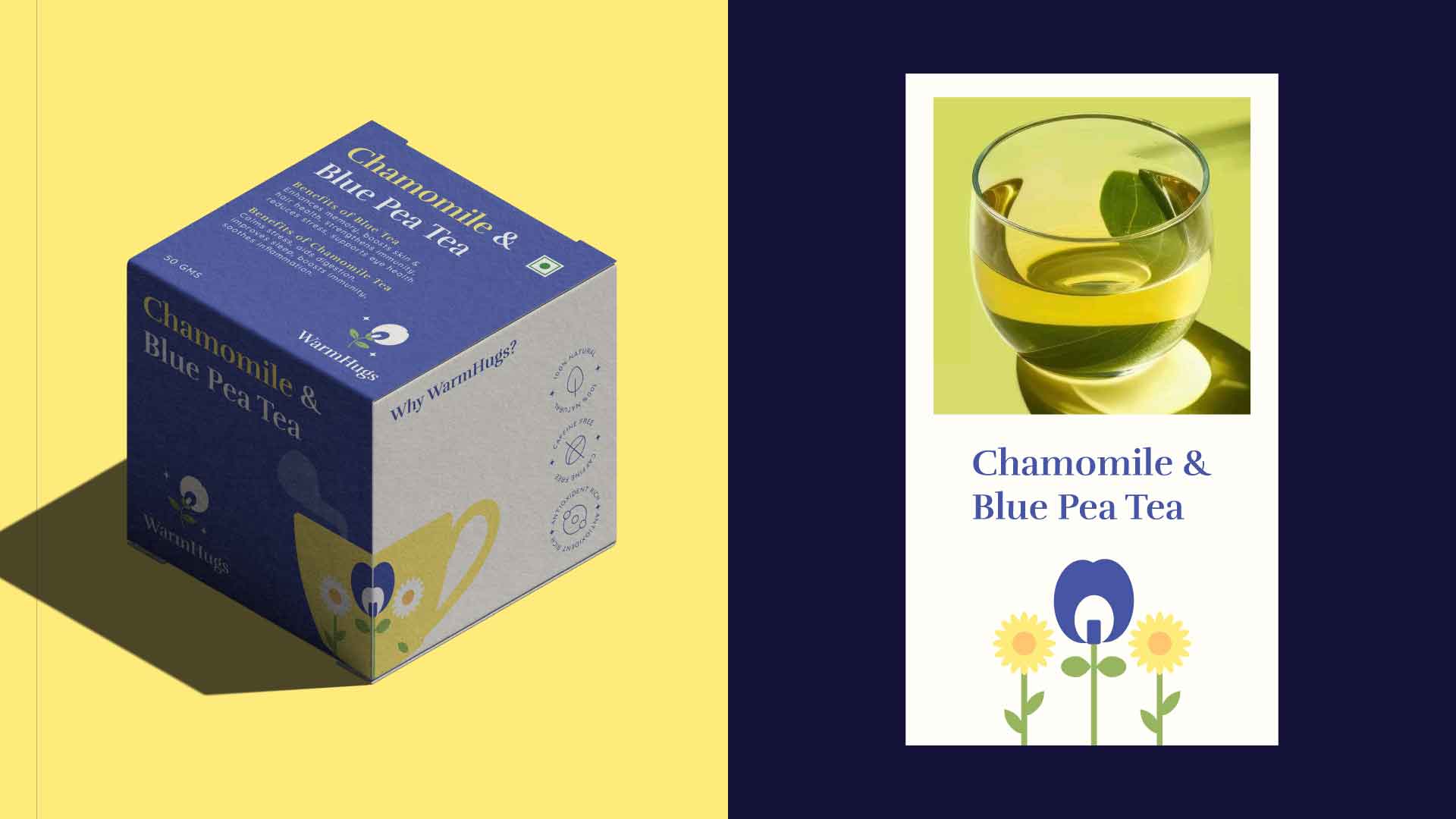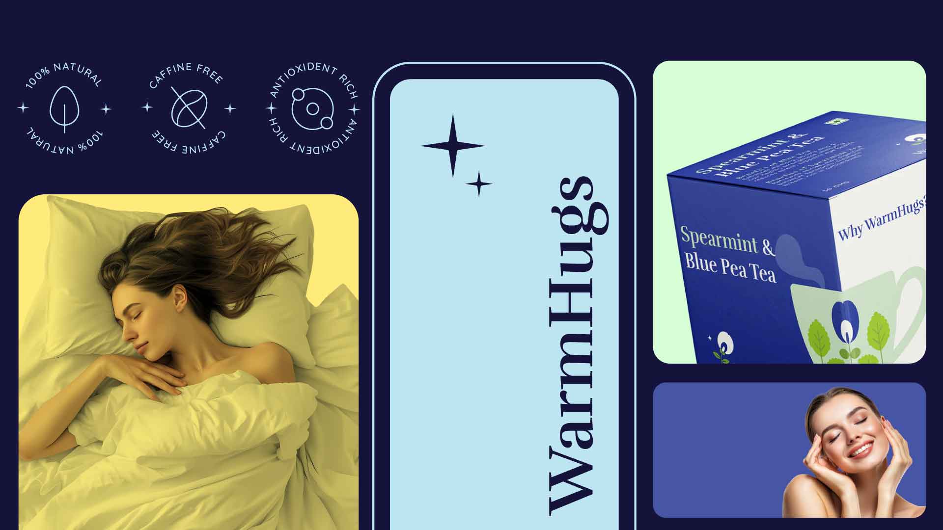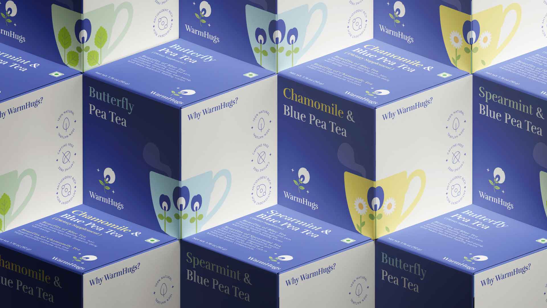The WarmHugs packaging design is created to reflect calmness, comfort, and a soothing tea experience. Inspired by the idea of relaxation and bedtime rituals, the visual system combines soft, nature-led elements with a clean and minimal aesthetic to communicate purity and ease.